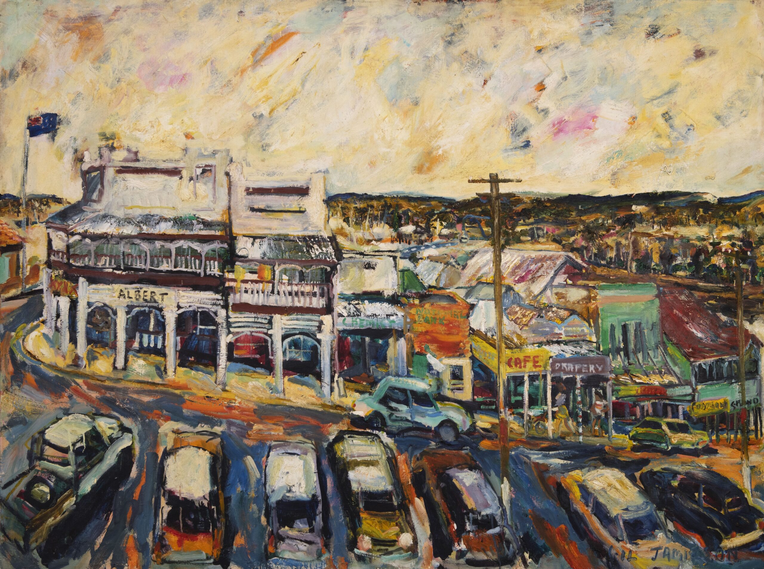 Gil Jamieson (1934 -1992), ‘Monto in the landscape Albert Hotel’, 1981. Oil on canvas, 180 x 134cm. Photograph by Maxene Cooper.